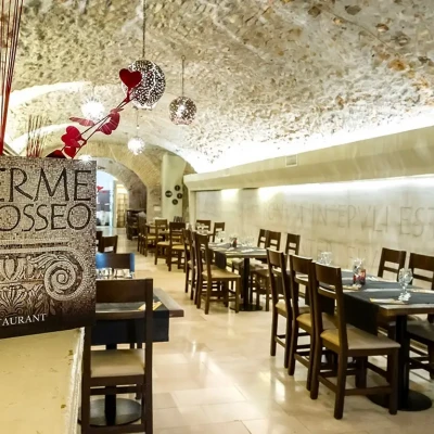 Il menù de Le Terme del Colosseo propone specialità della tradizione romana come la carbonara e la cacio e pepe, preparate con ingredienti freschi e di qualità, per offrire sapori autentici e un’esperienza gastronomica unica. Grazie alla sua posizione centrale e agli spazi accoglienti, il ristorante è perfetto per cene di gruppo e per celebrare occasioni speciali in un’atmosfera ricca di storia.