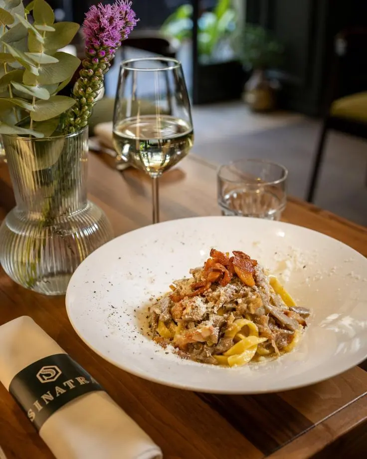 Il Sinatra è conosciuto per i piatti tradizionali di terra, come pasta o secondi e per la sua atmosfera."